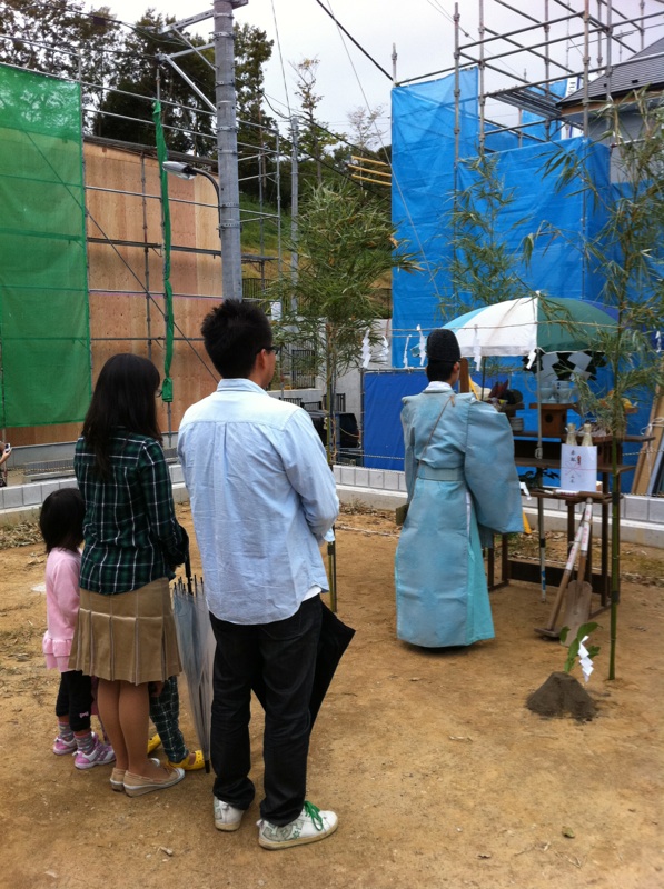地鎮祭! Published 2011年10月2日 | By morita 本日請負契約をいただいている横浜市のY様邸の地鎮祭を行いました。パラパラと雨が降ってきましたが地鎮祭を行っている時間には雨もやみ無事終了しました。 今週の木曜日には地盤改良工事を行い、来週連休明けより基礎工事の着工となります!秋も深まり雨が多くなる季節となりましたが順調に工事が進行することを祈ってます!来年の2月くらいまでには完成させる予定でおります! 共有:FacebookTwitter